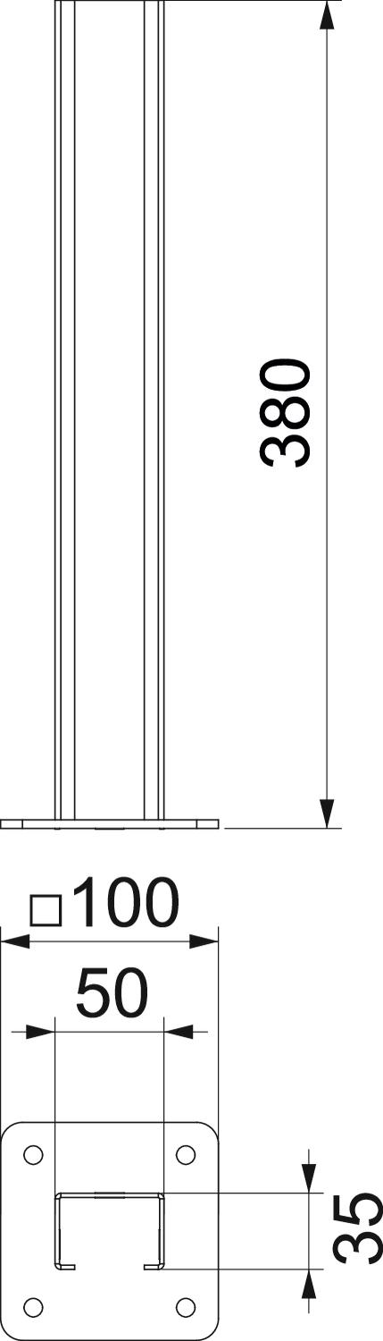 Bodenstütze zur Montage der Geräteeinbaukanäle vor Fensterfronten.